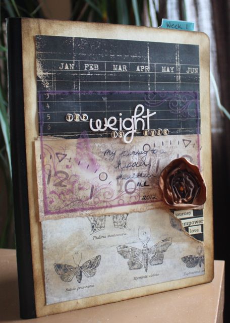 In an effort to keep myself on track, I altered a dollar store composition book into a weight loss journal...